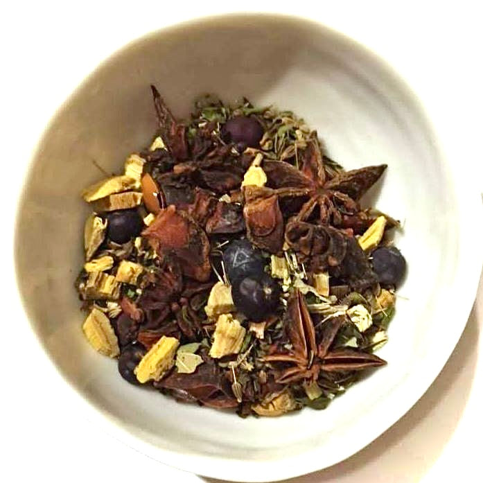 Zutaten: Anissamen, Süßholzwurzel, Sternanis, Krauseminze, Wacholderbeeren, Mädesüßkraut, Brombeerblätter